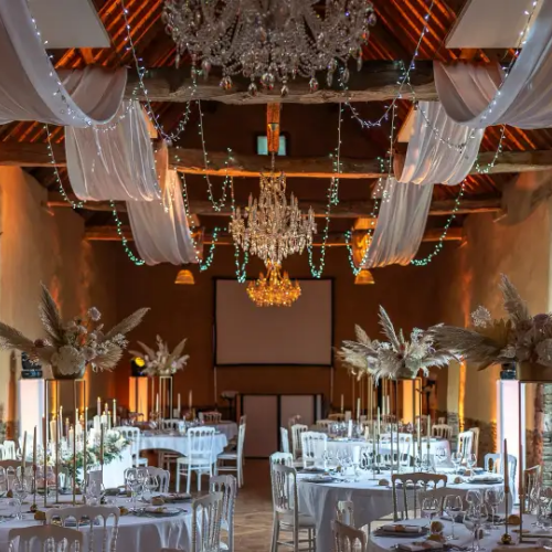 L'ajout d'un éclairage décoratif apporte une touche cosy et glamour à votre salle de réception de mariage, en transformant simplement un espace en un lieu de fête mémorable et conviviale. Voici quelques photos d'éclairage décoratif que nous avons réalisés en Bretagne et Normandie lors de réception de mariage.